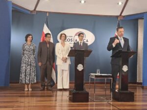 “Hoy tengo el enorme gusto de presentarles el proyecto Marchamo Digital, una iniciativa país, interinstitucional, que modernizará la regulación vehicular y simplificará los servicios para los ciudadanos. Con esto los vehículos estarán identificados de manera única por medio de un chip que enviará la información hacia un sistema informático y esta información la podrán leer los equipos de la Policía de Tránsito”, señaló el presidente Rodrigo Chaves Robles.