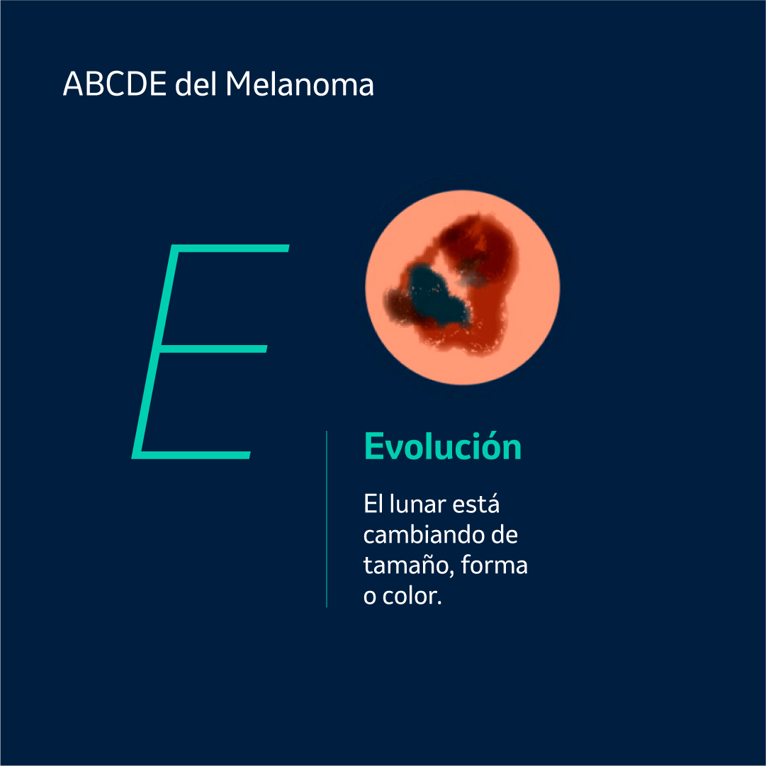 Evolución: el lunar experimenta cambios en su forma, color, tamaño o sensación (comezón, palpitación, dolor o