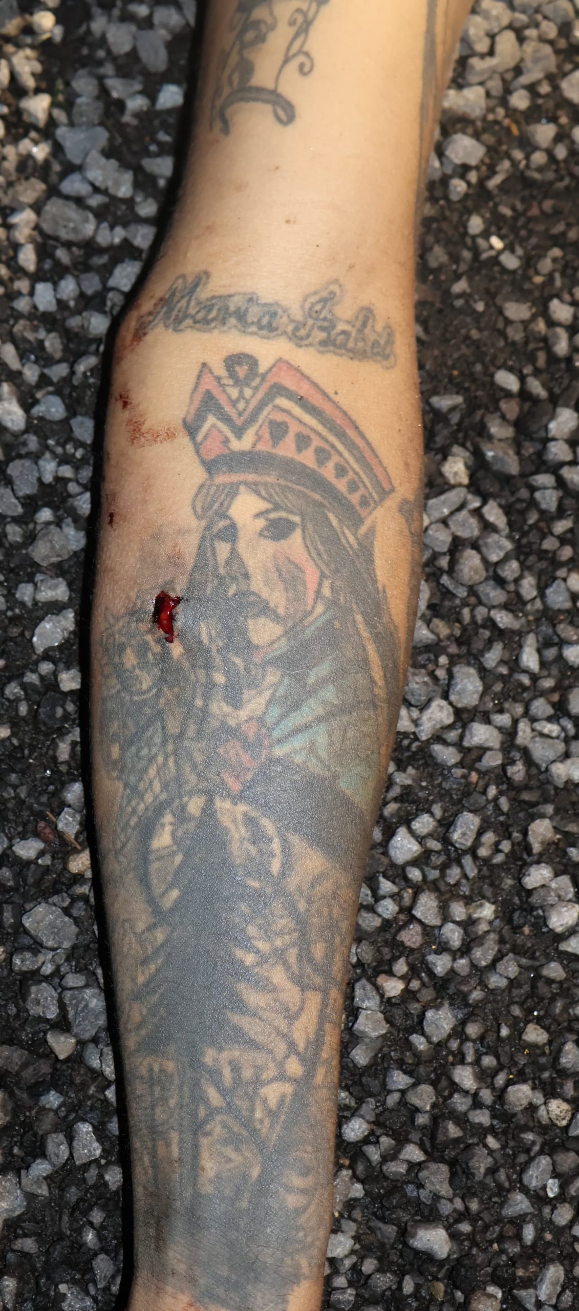 Los investigadores del OIJ de Alajuela, se presentaron a la escena y realizaron el levantamiento del cuerpo, el cual presentaba aparentes heridas por proyectil de arma de fuego en varias partes de su cuerpo. La víctima se trata de un masculino de aproximadamente entre 25 y 35 años, contextura delgada, tez morena y cabello castaño corto, el cual vestía una camisa negra, pantaloneta gris y portaba sandalias color azul. El ofendido tiene varios tatuajes, por lo que se solicita la colaboración de la ciudadanía que sí reconoce alguno de estos, se comunique a la línea 800-8000645, al WhatsApp 8800-0645 del Centro de Información Confidencial del OIJ. A continuación, se describen los tatuajes y los lugares donde se ubican: 1. Antebrazo derecho, nombre de “Elianeth” en letra cursiva. 2. Pecho lado izquierdo, “imagen de un hombre con un niño en brazos”. 3. Antebrazo izquierdo, “lo que aparenta ser la imagen de la virgen y el nombre de María Isabel”. 4. Brazo derecho, el nombre de “Rafael”