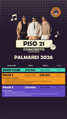 PISO 21 – Fiestas de Palmares 2026 se agotan las entradas