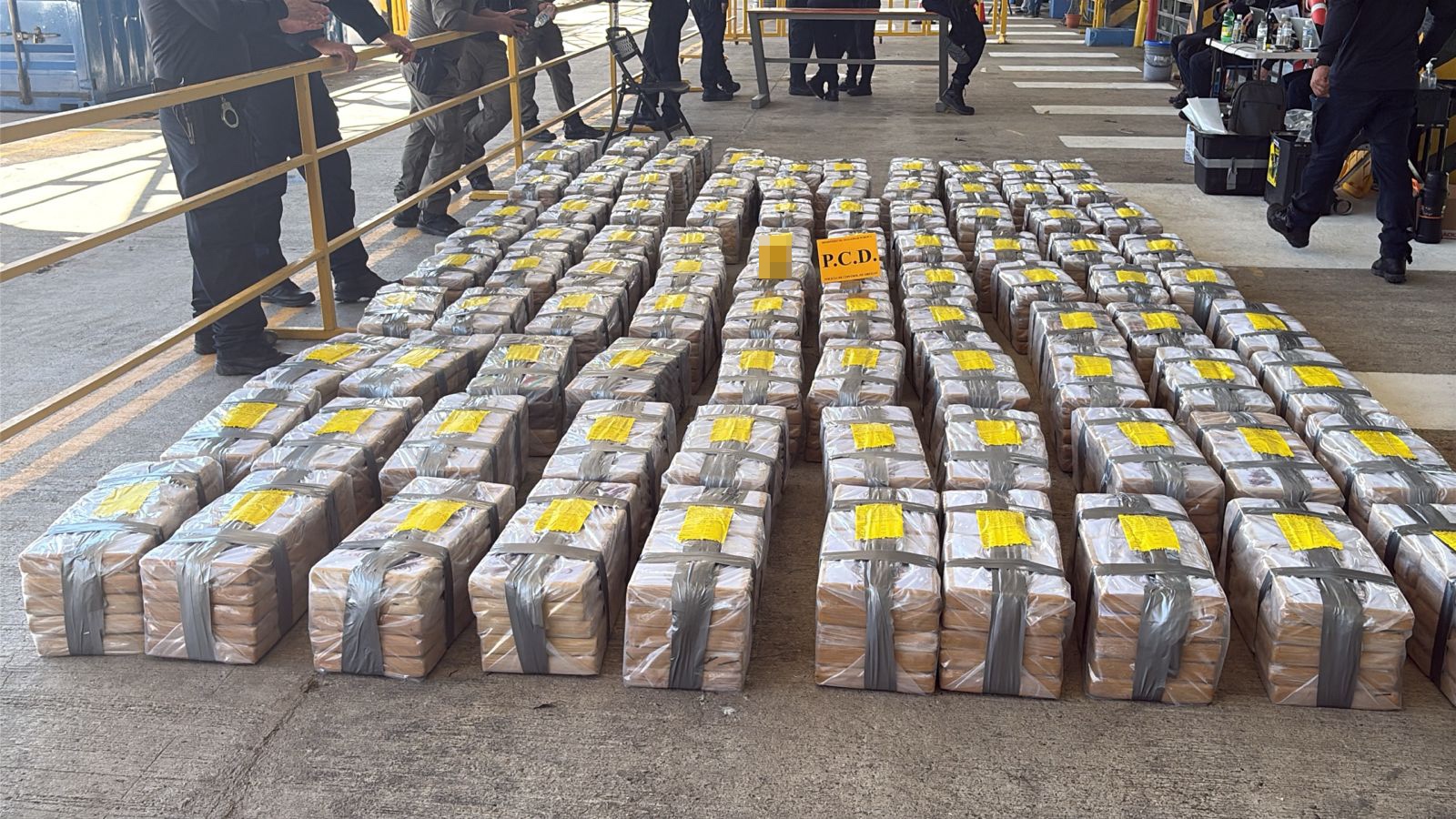 En el operativo participaron el Servicio Nacional de Guardacostas, la Policía de Control de Drogas (PCD), la Unidad Especial de Apoyo (UEA) y la Dirección de Inteligencia y Análisis Criminal (DIAC), con apoyo de la DEA y un avión de patrullaje marítimo de Estados Unidos. Tres ciudadanos colombianos fueron detenidos tras intentar lanzar la droga al mar.