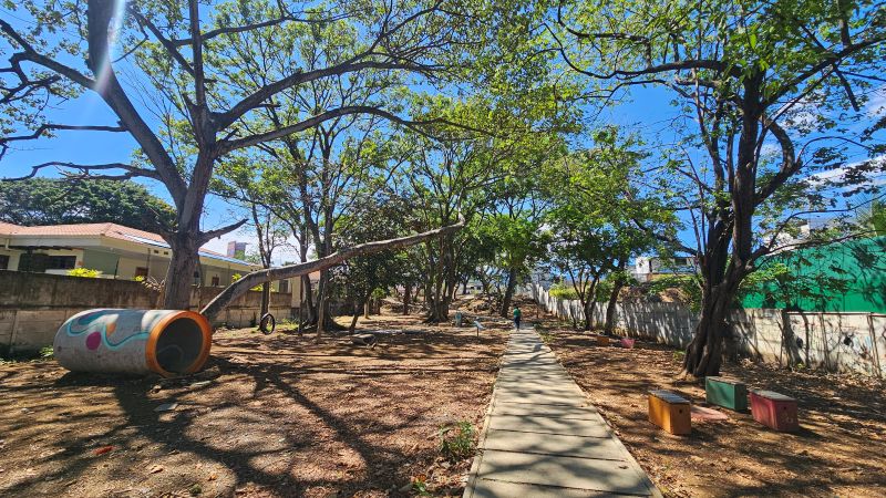 El diseño del nuevo parque se construyó a partir de sesiones de participación con vecinos y vecinas, facilitadas por estudiantes de LCI VERITAS, quienes promovieron la construcción colectiva del espacio. Como parte del proyecto, en alianza con FunDeporte, se llevó a cabo la remodelación y demarcación de la cancha, habilitando condiciones adecuadas para la práctica de disciplinas como baloncesto, voleibol y fútbol sala.