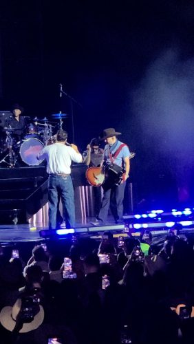 A las 8:00 p.m., Grupo Frontera apareció en el escenario y, desde los primeros acordes de “La del proceso”, quedó claro que sería una noche muy cercana con su público. Le siguieron “Por qué será” y “De lunes a lunes”, marcando un inicio fuerte que mantuvo la energía durante todo el show.